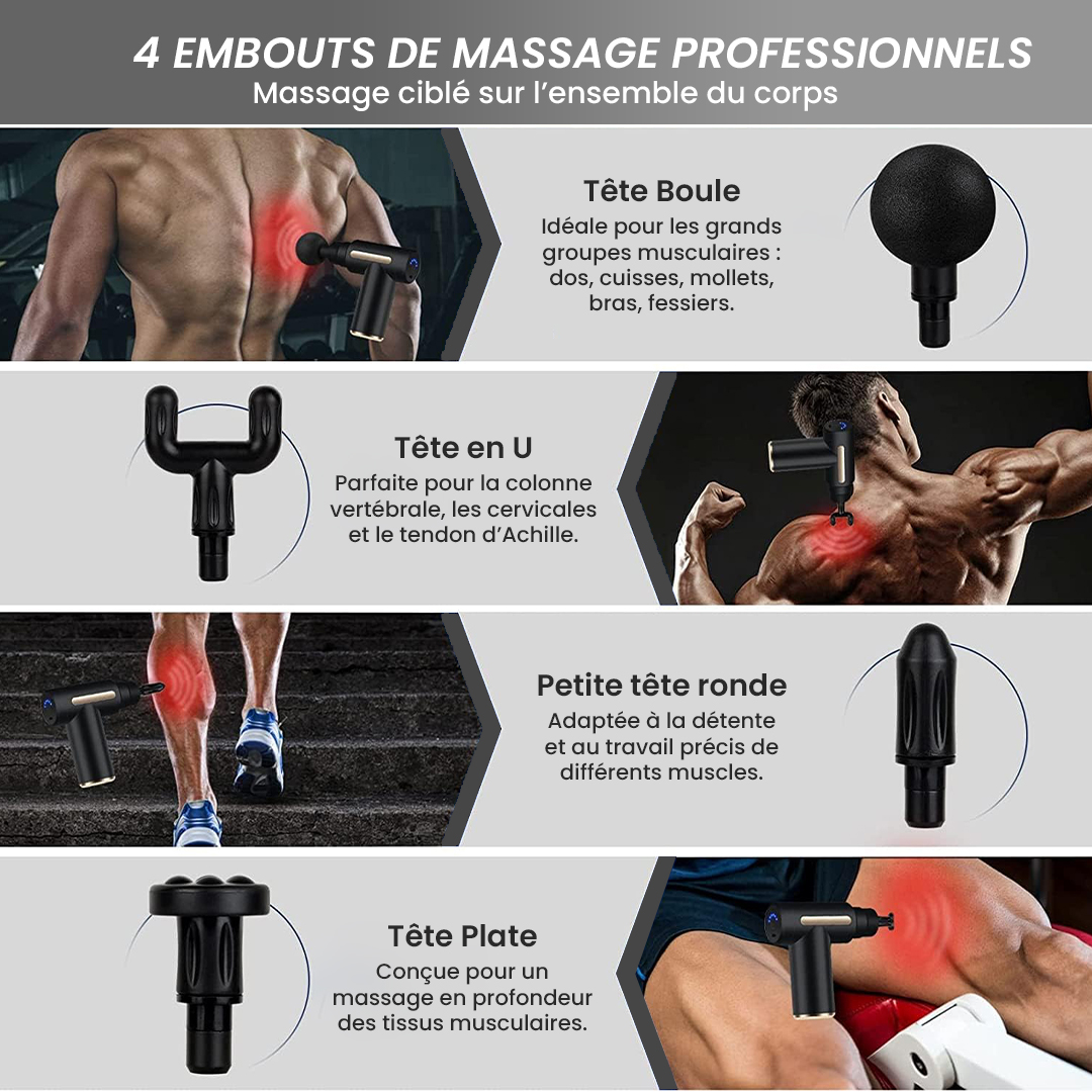 Pistolet de massage conçu pour optimiser la récupération musculaire après l’entraînement. Puissant, silencieux et facile à utiliser, il aide à soulager les tensions, détendre les muscles et améliorer la circulation. Équipé de plusieurs embouts interchangeables (balle, pointe, double tête), il s’adapte à chaque zone du corps pour un massage ciblé et efficace. Un indispensable pour récupérer plus vite et performer au quotidien avec NRFIGHT.